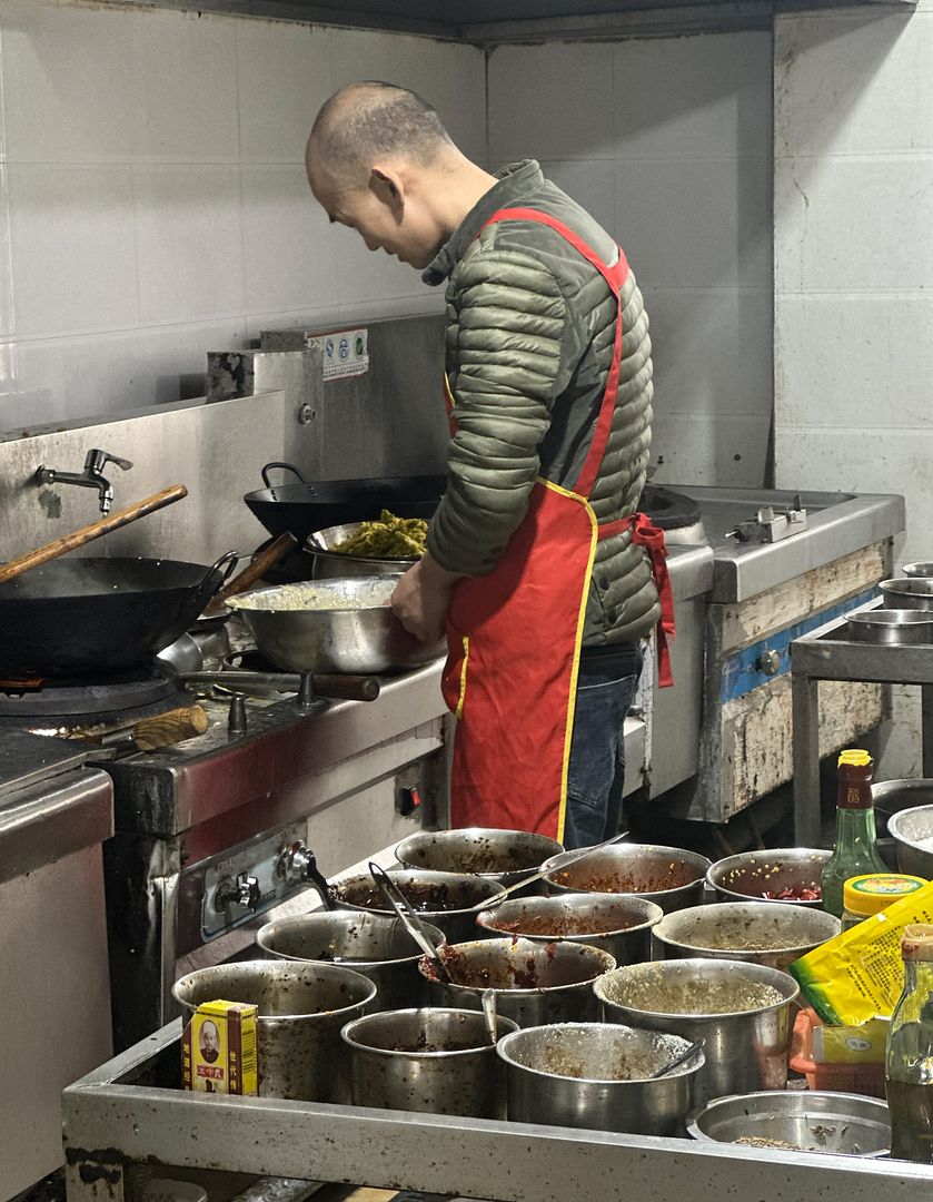 后厨中忙碌的大厨。