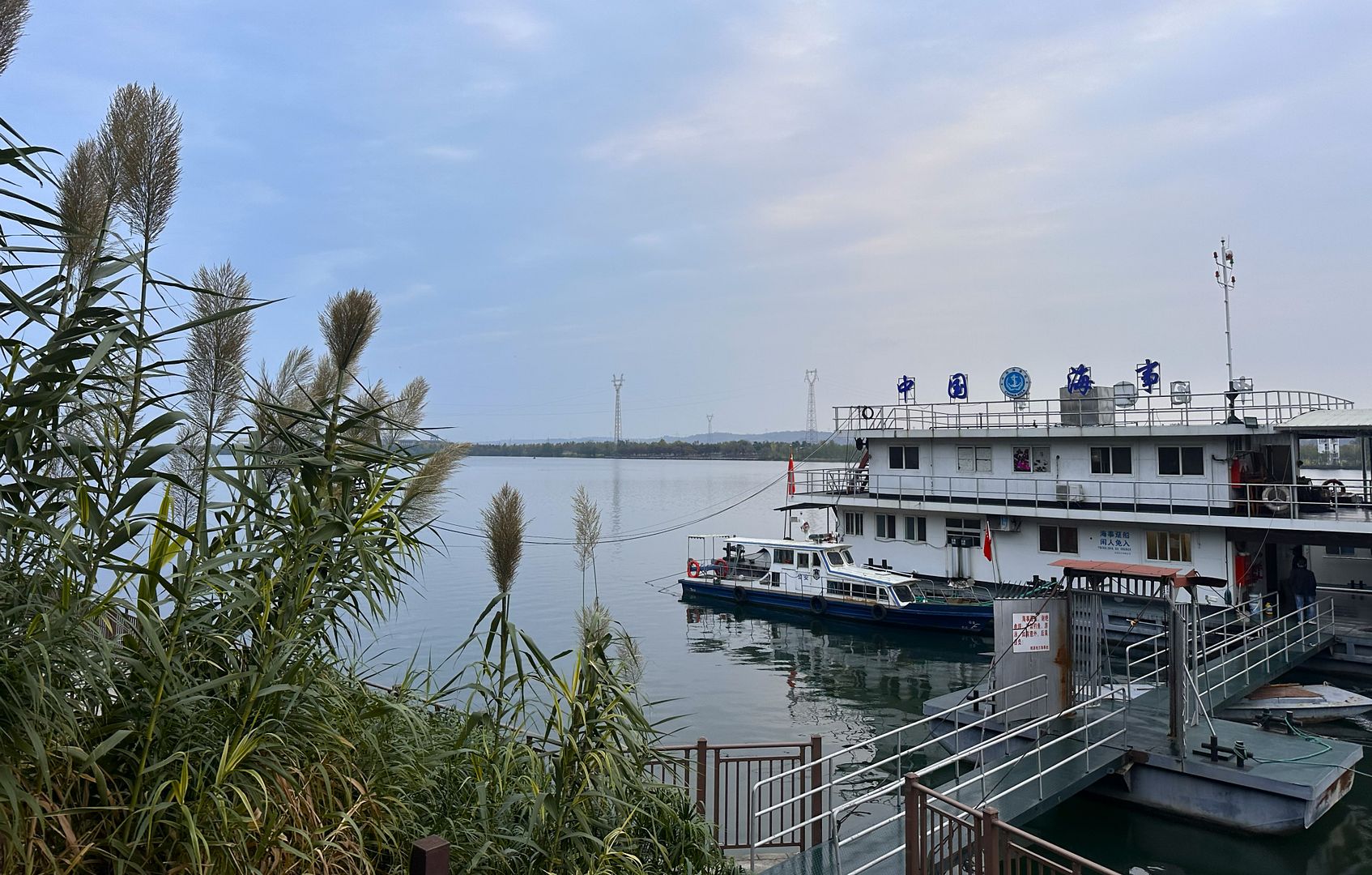 沅江上的中国海事船。