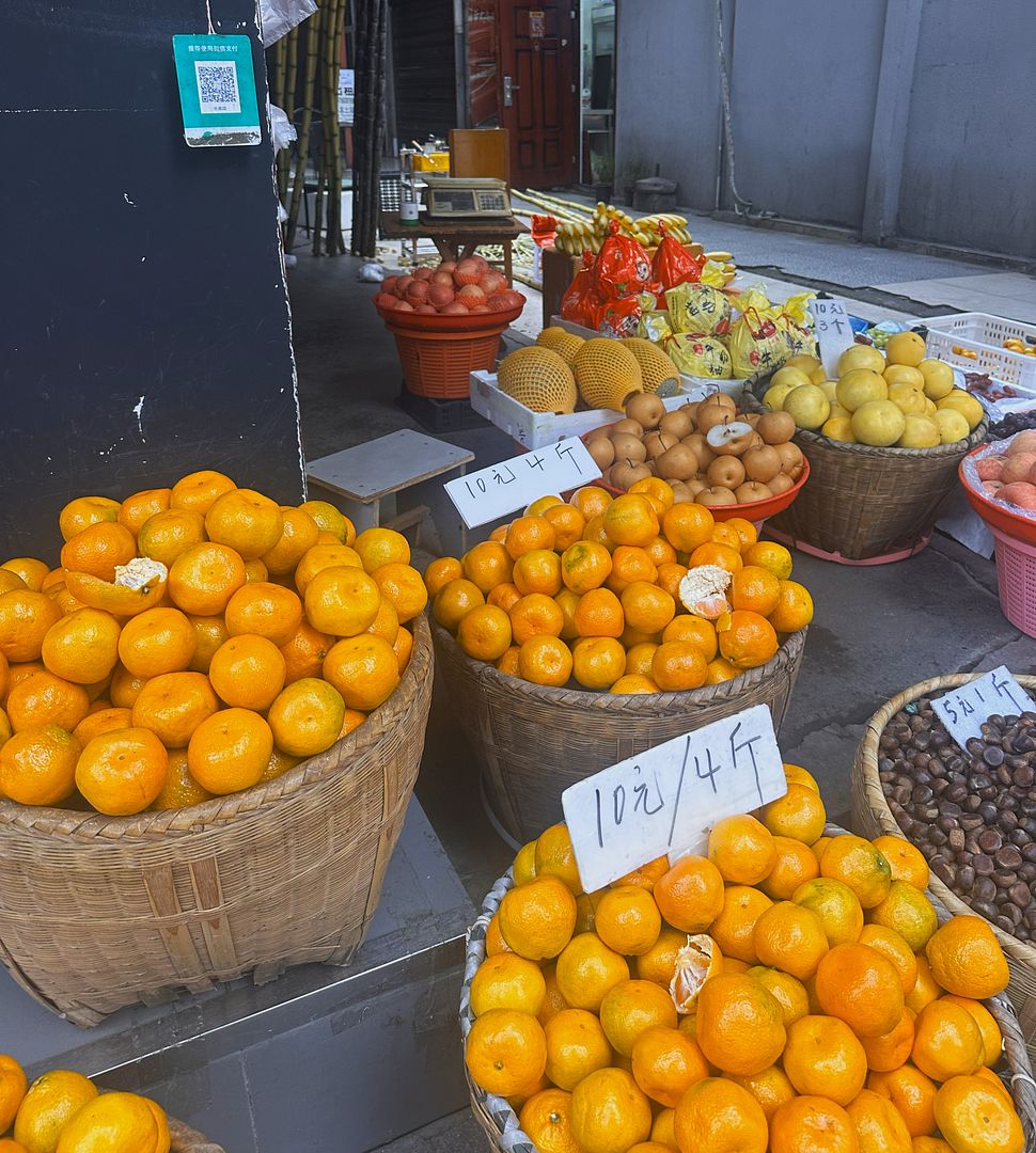 橘子¥2.5/斤,换算成美元$0.3/磅,大约是美国市价的1/6。