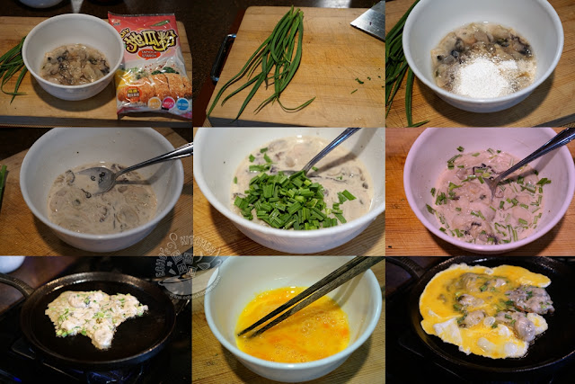 家乡的蚝煎用的蚝是新鲜的小生蚝,在美国我只买得到大生蚝,这次买的还是打折的冷冻生蚝,做出来的蚝煎味道却一点都不差噢!