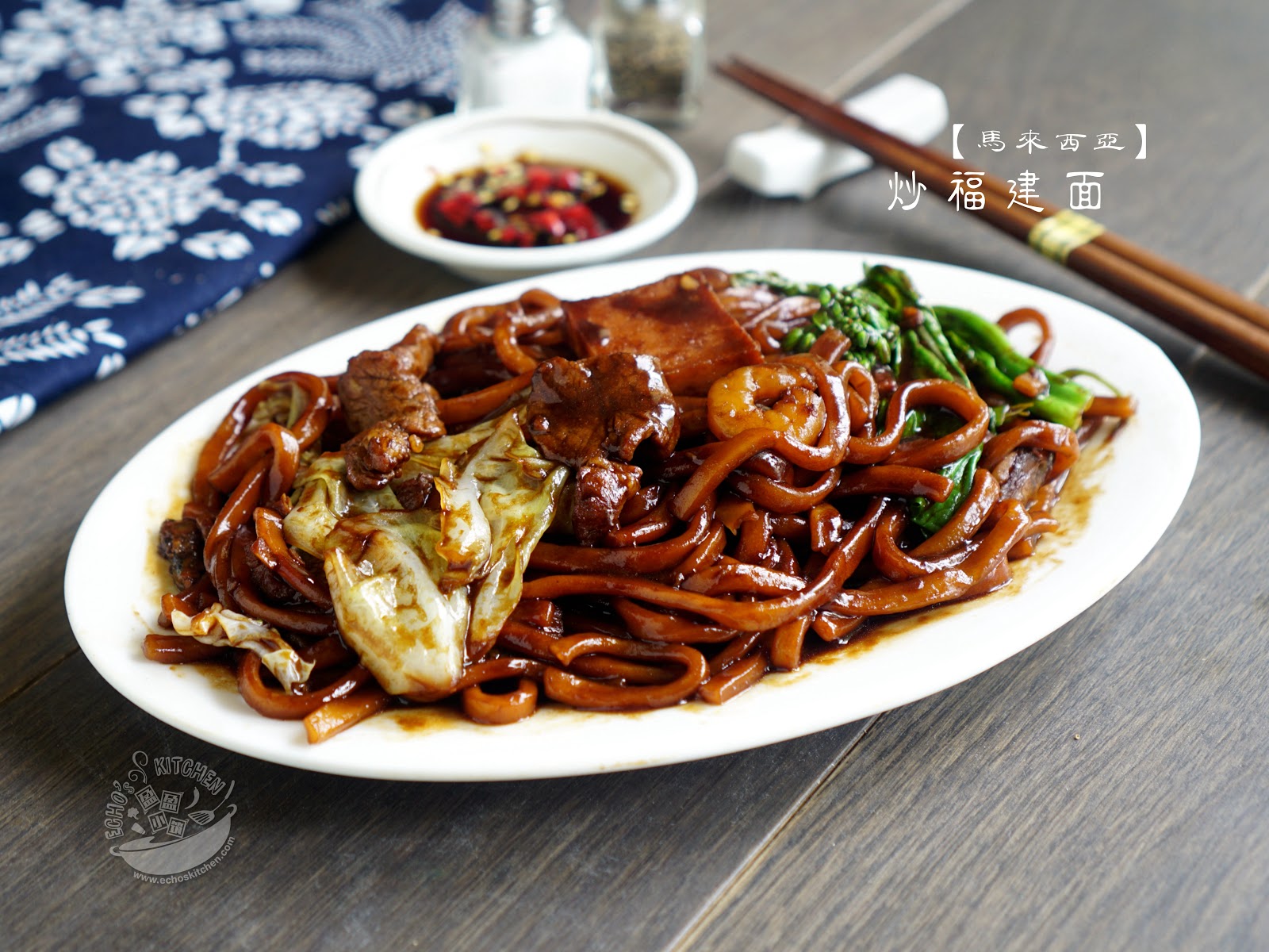 后来我把面条换成上海粗面条,为了让面条更爽口和消除微微的酸气,我煮面条的时候加了1/4 勺的小苏打。炒面的时候把高汤换成清水加一小勺自制的大地鱼粉,制作的时候厨房里就有了大排档特有的香气,我马上就知道,我这次猜对了哦!做好一入口,我好想大喊一声, 告诉大家:“就是这个味道啦!”