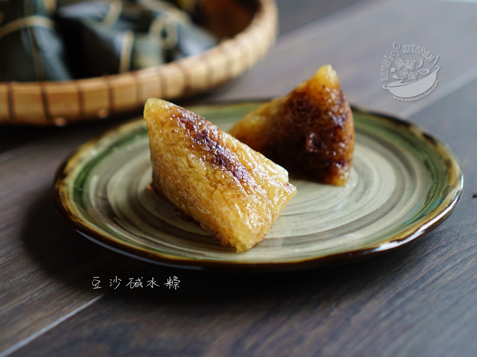 小时候每逢端午节妈妈都会裹上好多的咸肉粽和娘惹粽,但拜拜用的碱水粽却总是向乡里的一些家庭主妇买的,碱水粽有股特别的碱水味,家里的小孩都不爱吃,所以一般会沾了甜味的香兰咖央,或焦糖咖央吃。