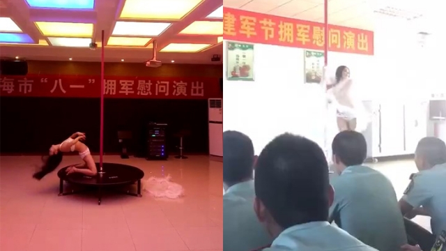 下周二(8月1日)是解放军建军90周年,军方已准备大规模庆祝。中央军委主席习近平向功臣颁发八一勋章、晋升上将及部队纪功,更盛传当日会举行阅兵。基层部队则用「自己的方式」庆祝建军,其中珠海的武警部队近日则请来穿着性感的钢管舞女郎,进入军营在众多军人前表演。