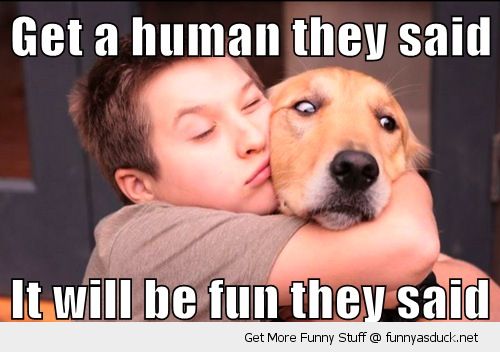 狗狗真的喜欢我们抱抱吗?第一幅图里狗狗明显在躲避,第二幅狗狗的眼神并不轻松,第三幅里人很享受,但狗狗给勒得喘不过气了