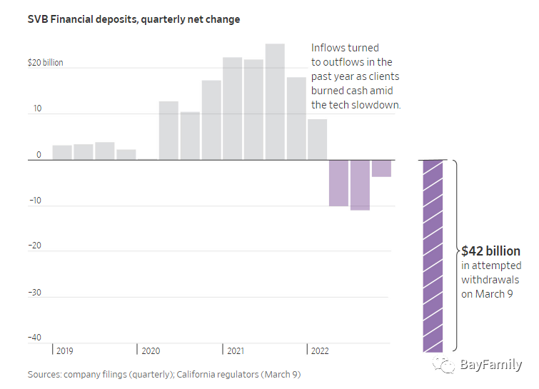 等到3月9号,所有的存款人都意识到SVB的风险,开始大规模的取款,这一天达到了420亿美元。SVB银行是无论如何没有办法再继续下去了。