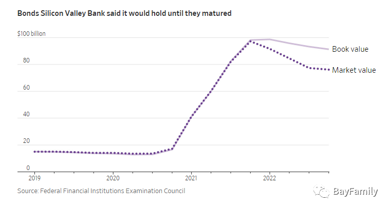 SVB bank手上的这些债券,虽然市场价格下跌了,可是在会计财务账上并没有反映出来。如果SVB bank持有这些债券,直到这些债卷到期,那也不会有什么问题。因为毕竟最后每年也有3%的收益。