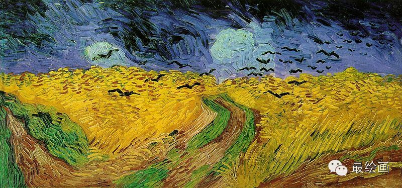 他生下来,画画。死后,麦田里一片金黄,一群乌鸦惊叫着飞向天空。