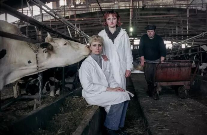 2004年,圣彼得堡,挤奶女工和母牛人工授精技术员