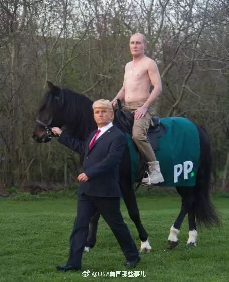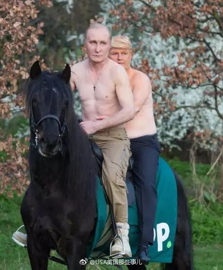【33】伦敦演员扮演成川普和普京的样子,出现在当地伯吉斯公园。两人裸身骑马,基情四射。