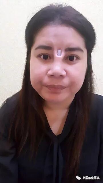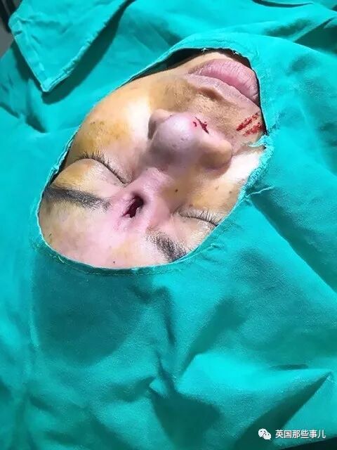当初植入的硅胶软骨,竟然从她两眼之间的鼻梁处冒了出来!