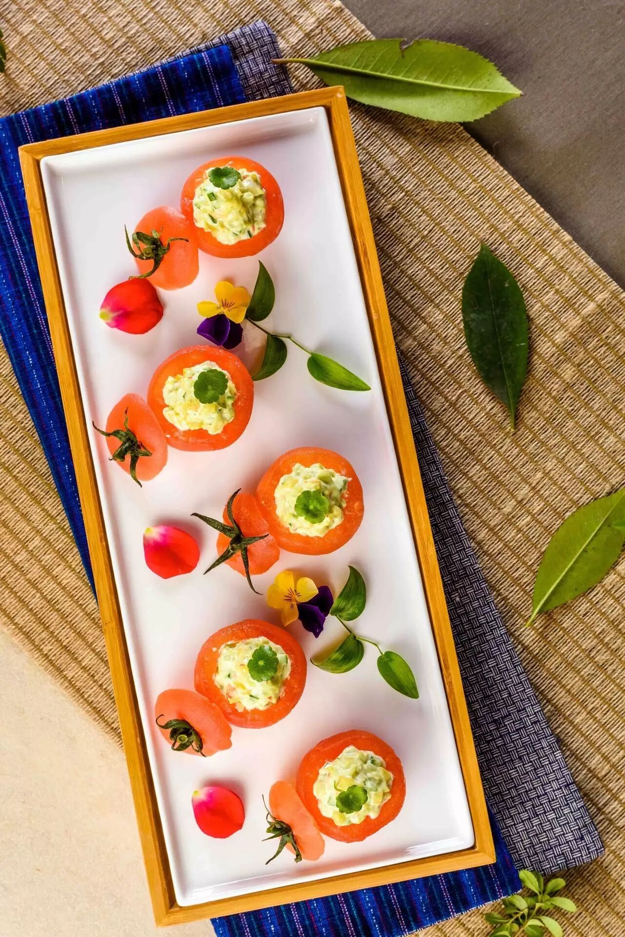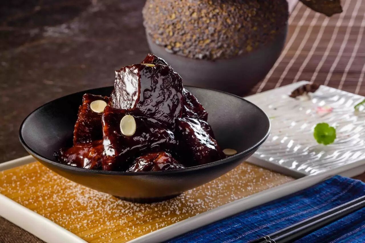 再比如这款改良的菜品---文火焖雪花牛肉。“雪花牛肉细嫩易熟,大厨在烹制时用很小的火焖制,且时间不长;期间加入用中药材和香料调配的酱汁,将牛肉的汁水牢牢锁住,增加牛肉口感的丰韵程度。只以盐和胡椒调味。入口的雪花牛肉鲜嫩无比,汁水浓郁。”李振华说。