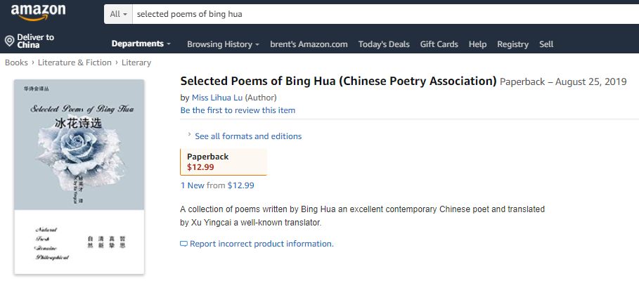 冰花 , Bing Hua, 现居美国马里兰州。其诗歌独特的风格被称为"冰花体",多次在世界性诗歌比赛中获金奖。她著有诗集《这就是爱》 (THIS IS LOVE) 、《溪水边的玫瑰》 (ROSES BY THE STREAM) 等, 被誉为"情诗皇后"、"诗坛玫瑰”,并接受过央视专访。Bing Hua is now living in Maryland U.S.A. Her unique poems have earned her the epithet of "Bing Hua Style" and she has won quite a number of international poetry rewards. Her poetry collections include This Is Love, Roses by the Stream, etc. and is thus regarded as "The Queen of Love Poems", "The Rose of Poetry", etc. She was once interviewed by China Central Television.