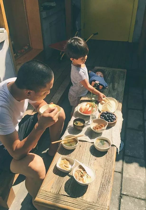 只要天气晴媚,妈妈就会在院里的简易餐台上放上一桌美食,一家人开开心心吃上一顿阳光早餐~