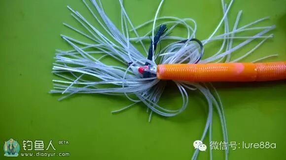 胡须佬,严格说也是铅头钩的一种,可配合其他软饵使用,也可单独慢沉使用,操作方法也同铅头钩,bass杀手,很多职业钓手使用。