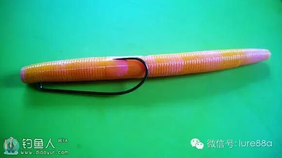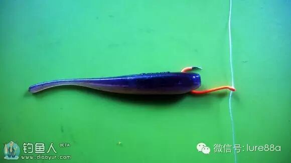 穿钩方法,鱼钩从假饵头部直接贯穿