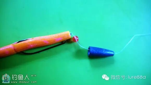 穿出点很重要,保持假饵伸直,但还必须紧贴铅头。
