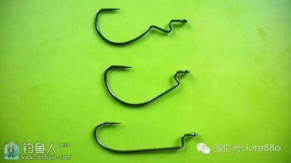 曲柄钩,多种样式和大小,适用于不同种类的软饵,使用方法基本相同。