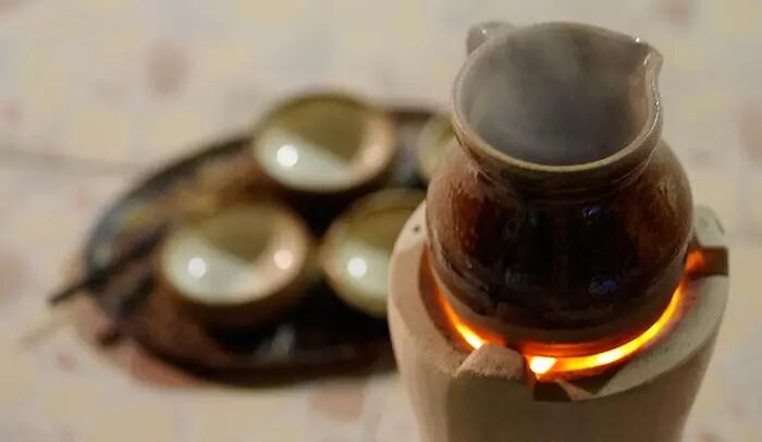 土锅茶是我国为云南哈尼族一种古老而方便的饮茶方法。先用大土锅将山泉水烧开后,放进南糯山上特制的“南糯白毫”,约煮5—6分钟后,将茶水舀人竹制的茶盅内饮用,这种茶水清香可口,回味无穷。哈尼族同胞爱饮这种茶,并称它为“土锅茶”。