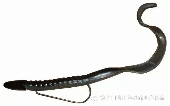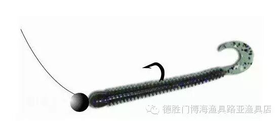 曲柄钩钩住条棒状软饵中间部分,入水后让其缓缓下沉到所要的深度,透过竿先微微的抖动,让软饵在水里呈现自然的蠕动泳形,也可在软饵左右两侧塞入铅针,改变其蠕动的泳形,此种钓组对大嘴黑鲈有十分致命的吸引力。