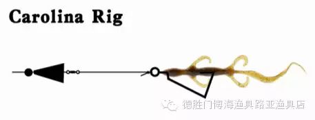 软饵基本钓组之一,由子弹铅、挡珠、8字转环、软饵、曲柄钩(宽腹)构成,与德州钓组的区别是8字环与鱼钩之间绑了一段30~80厘米比主线要细的鱼线,通常使用相对较重的坠(1/4 OZ以上)。基本的绑法是把坠穿到主线上,使坠能够在主线上流动,再穿上玻璃球,之后将主线系在8字转环上,转环的另一端绑上一段30~80厘米的鱼线,鱼线另一端系在鱼钩上即可。