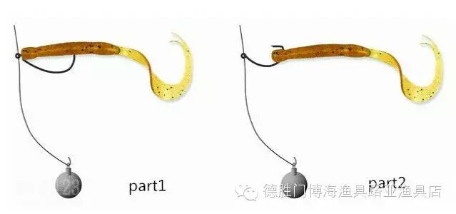 软饵的基本钓组之一,用铅头钩挂住软饵即可,使用简单方便,做钓效率高。