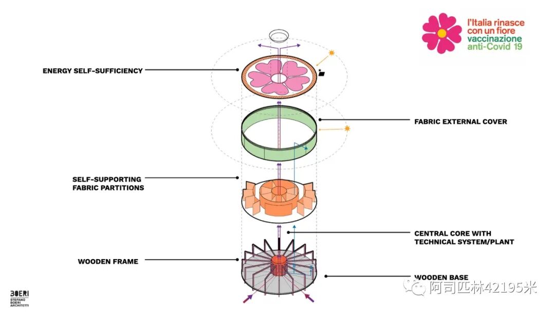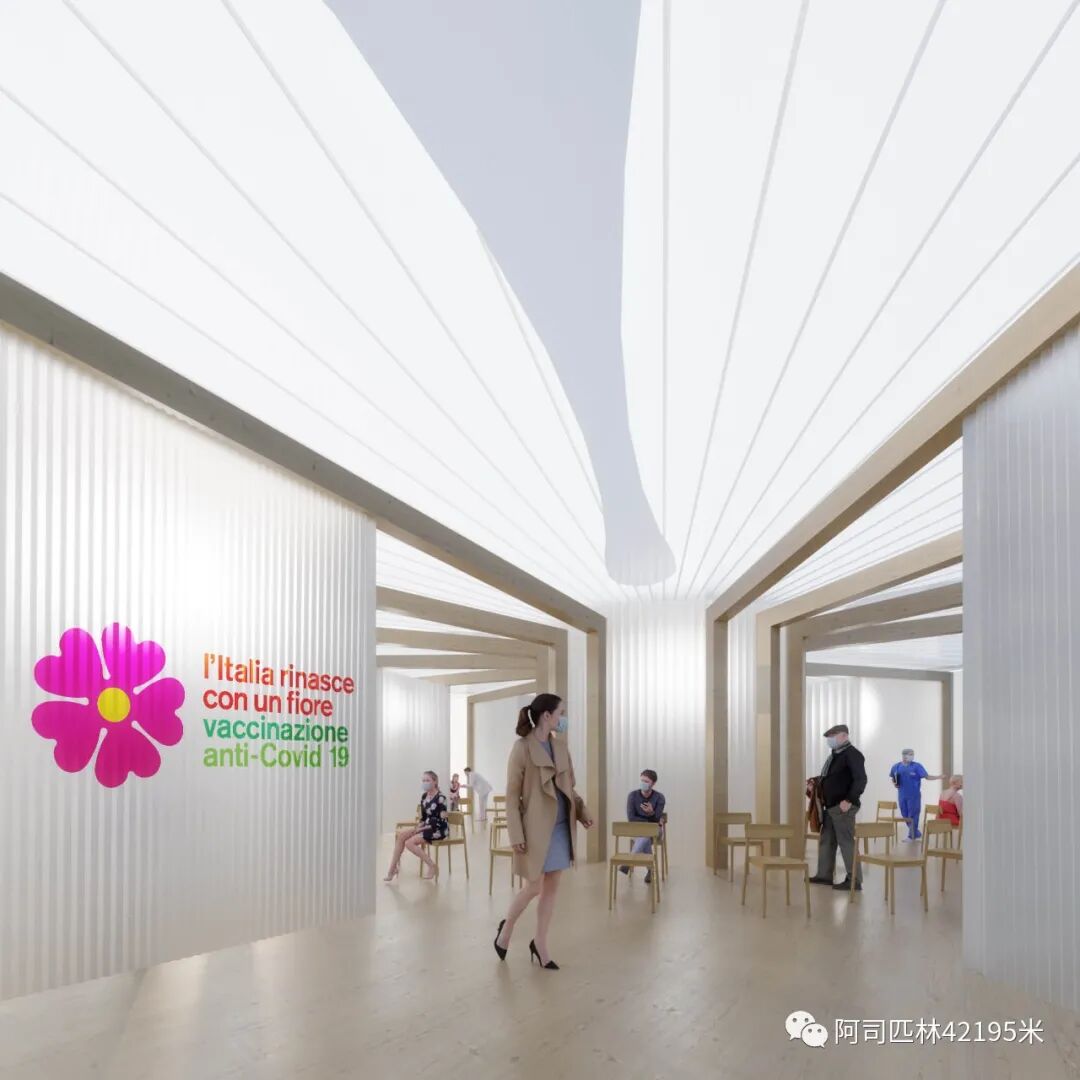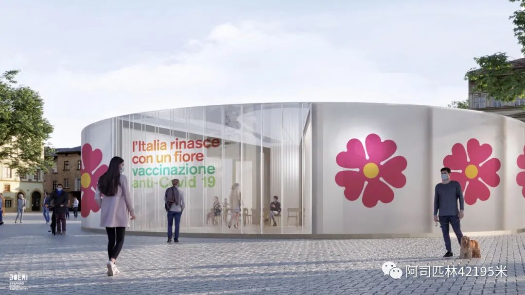 接种的徽标和接种亭由著名建筑师法诺·博埃里(Stefano Boeri)免费设计。
