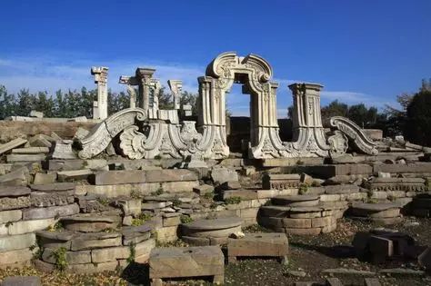 奥尔末拍摄照片的时候,距圆明园被焚13年,同治皇帝正巧也在1873年发布上谕,命择要重修圆明园,开工不到一年就因资金短缺以及众臣反对告停。