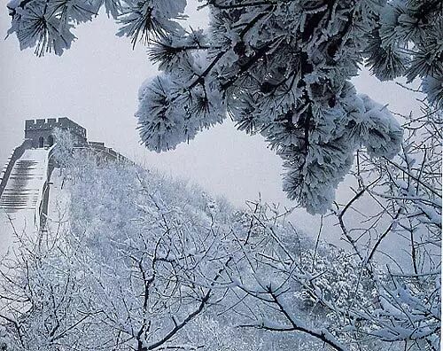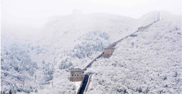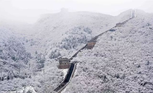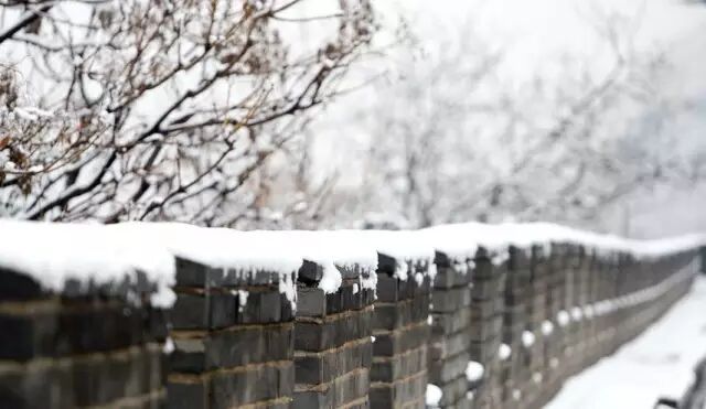 还没来得及枯黄的树叶上,联排错落的屋顶上,恢弘雄伟的城楼上,连绵起伏的山岗上,处处被白雪覆盖,薄雾萦绕,美不胜收。