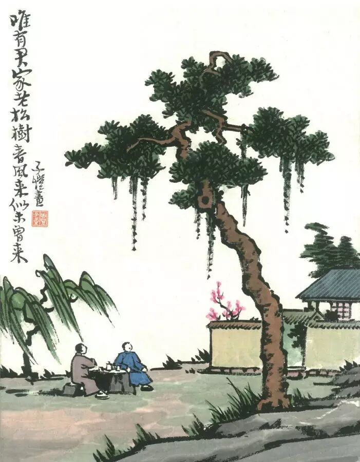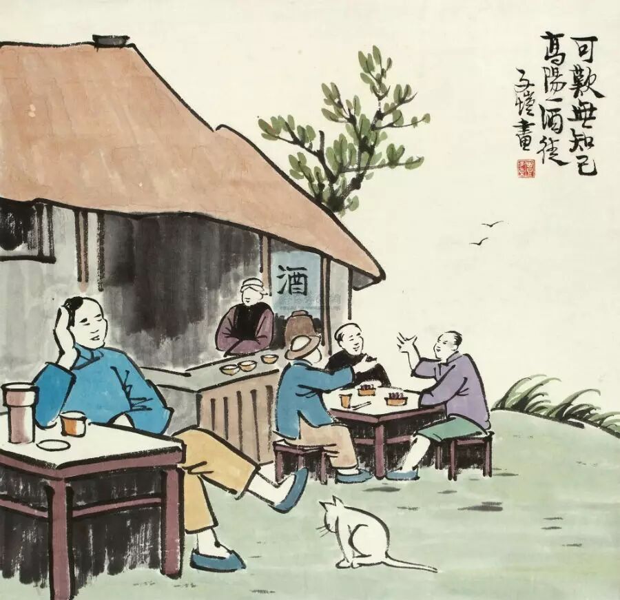 画龙点睛的是,子恺先生经常为画配上一两句古诗词,拙朴的书法加上切题的诗句,令人回味悠长。怪不得朱自清说,一幅幅的漫画如一首首的小诗,带核儿的小诗,就像吃橄榄似的,老觉着那味儿。