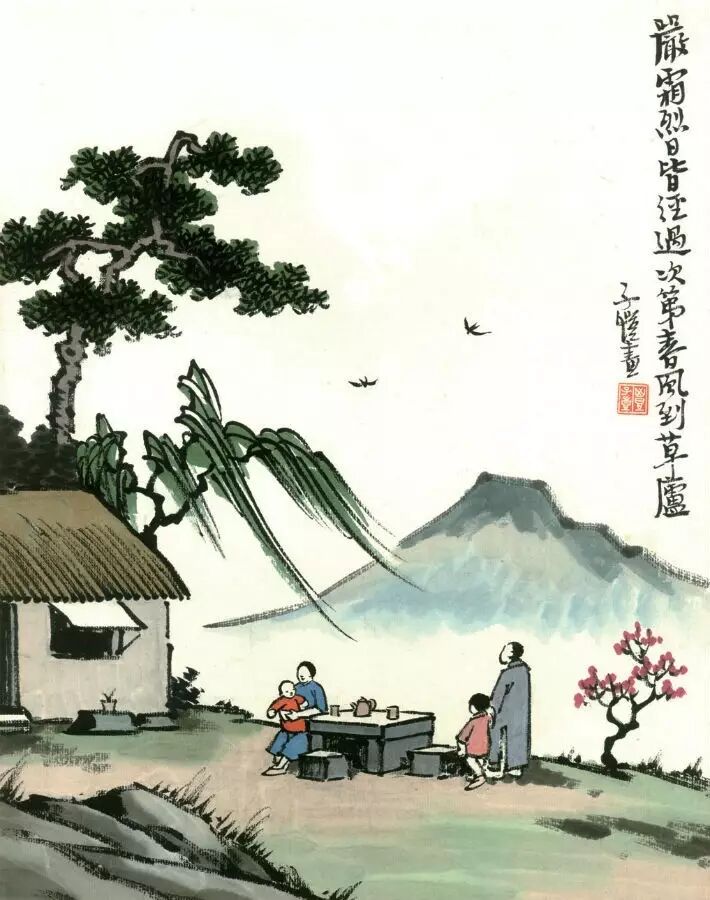 欢喜他的画,于一小片纸上,寥寥几笔,就勾画出一个意境,神韵十足。有时还常能从中看到自己的童年过往,反观时下了悟人生,透着一丝小小的禅意。子恺先生作画,画风拙朴,平易近人,意味却隽永悠长,常取山水儿童为题材,一景一物皆为平凡的人生,点点滴滴都是朴实的生活。雅俗共赏,即便是贩夫走卒,也能一眼看懂。