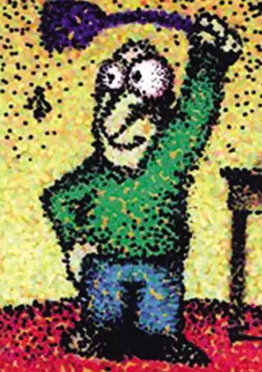 印象派起源于19世纪60年代的法国,因莫奈的画作《印象·日出》而得名。它抛弃了古典艺术“绘画中最重要的就是线条”的告诫,着重于展现光影的改变而否定轮廓。不过,这幅漫画里的人物的轮廓模糊,色彩由一个个小点组成,更像是修拉创立的点彩画派。