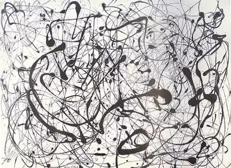 这是 20 世纪 40 年代中期出现在纽约的画派,也称抽象表现主义。强调创作的自发性,随机和无意识。西方美术史论家认为中国画的泼墨方式与行动绘画相似,画面效果有接近中国书法艺术的趣味及美感。