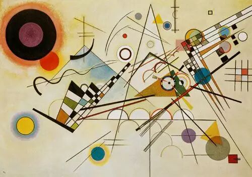 代表人物和作品有:康定斯基《构成第八号》、蒙德里安《黄与蓝的构成》等。