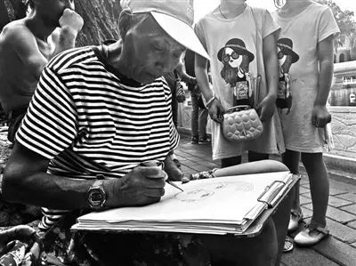 此后老人坐在冷风中,除了笔端唰唰唰,一动不动。姑娘看得莫名动容,期待着这位功力深厚老人的大作。