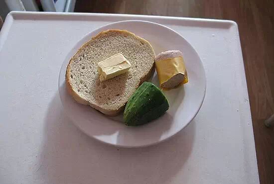 波兰医院餐,面包、黄油、酸黄瓜和香肠