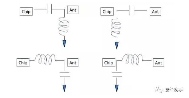 理论上需要2各件调一个频点,所以实际的手机或者移动终端通常按如下规律安排匹配电路:对于简单一些的,天线空间比较大,反射本来就较小的,采用Pai型(2并一串),如常规直板手机、常规翻盖机;稍微复杂些的采用双L型(2串2并):对于更复杂的,采用L+Pai型(2串3并),比如用拉杆天线的手机。