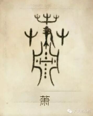 萧,肖姓图腾,新中国成立后,政府推行简体字,把“萧”改成“肖”,数百万“萧”姓人士全都被变成“肖”。萧,现在也写作“肖”,是以社会发明命名族称的。该族始祖发明的观日灵台叫萧。萧由扶桑日表(即“艹”字头)、手拿刀具契刻太阳运行轨迹的巫觋,树立扶桑日表的渊三部分组成。类似于“亚”形的图形就是(氵単)渊,形中间的“H”是测量地平和水平的仪器,叫作日晷矩尺。