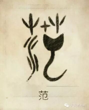 范姓图腾,范姓是蛇图腾,由表木、水、蛇组成。是巳,为蛇图腾,从水应是水蛇。“丫”是表木,“十”是“四方”,代表四时。汜人居范邑,以地为姓。始祖:士会。