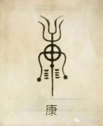 康姓图腾,是天表重的简化。伏羲氏木正共工氏康回嫡传子孙。共工氏因主持天表而称为康回。“回”是灵台方坛。康上为牙璋,中为玑盘,天竿两侧四点为圭度,即八卦历度。周有康叔,得康姓。始祖:康叔。
