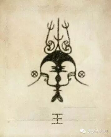 冯姓图腾,冯姓是牧马民族的族称,由两个马组成冯氏图腾,一匹马为雄马,一匹马为雌马。图腾左边的图案代表着牧马人手拿着鞭子,牡牝二马繁衍为马群,代表牧马民族子孙的繁衍昌盛,始祖冯翀(河伯),地为冯邑,以地为生