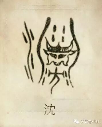 沈姓图腾,沈姓是以牛为图腾的氏族用牛沉河、渊、祭天求雨的巫觋职司,作为族徽,所以由水、渊、牛、方构成。“方”代表四方,是四时节气的象征。四时季节不及,该雨不雨,旱灾,以沉牛为牺牲祭河伯水神,以此方法求雨。沈沉一字,祖为实沈。又周文王十子季载食采于沈,得姬姓沈氏。‘