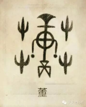 董姓图腾,董姓是炎帝第五世祝融(烛龙)八姓之一。董姓是风姓分支,祖先名飂叔安,其子继承太昊氏(风姓)驯养扬子鳄(古称龙)的本领,服侍于舜,赐董姓,为侯伯,因而可以在居邑设立天文仪器“重”,有了祭天权。董由天文仪“重”(中)和四游表()构成。“重”为主表居中,四隅方置四游表。