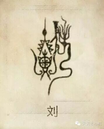 刘姓图腾,刘姓是燧人氏魁隗氏炎帝神农氏族的系的鸺鹠族的族称。“留”由“卯”和“田”组成,后来演变为刘。留的本义是掌管测定春分点的氏族。刘姓图腾是由一位长者手持刻刀契刻春天和秋天天气到达地球的运行规律,简作“留”。“卯”为春天的天门,简称春门,“田”为立主表天竿的天象台“叀”(博、甫、浦、囟皆为其象形),“卯”与天竿建木结合称作“柳”其氏族称相柳。秋门为今作“酉”,由祝融氏的“郑”姓所主管掌握。