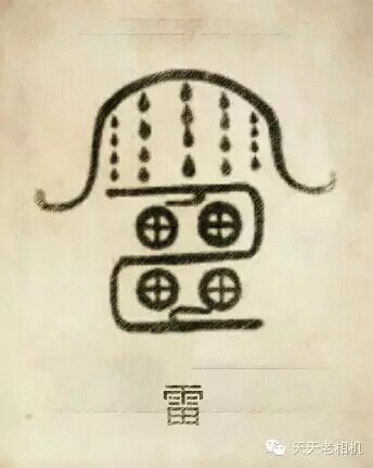 雷姓图腾, 雷雨之下的田园,崇雨之农耕氏.雷姓是燧人氏风姓族支雷泽氏族徽演变而来。有雨雷组成。雨像天穹(几为风的初文)中的水滴,是“天一生水”的宇宙观照,雨下之田是雷鼓象形,周环以电光,是自然图腾的典型。 始祖:方雷。