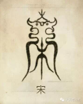 宋姓图腾,宋姓是以祖先发明图腾命名族称的典型。其祖先发明并继承建木晷天。宋由“宀”和木组成。木代表建木,“宀”上的点代表“天齐”,“冖”代表天穹,表示晷天历度。始祖微子启,以国得姓。由于宋姓之先为商,商又因是玄鸟所生,故图腾上方两侧为象形玄鸟。始祖微子启,以国得姓。 “坐龙椅”之人,皇族。
