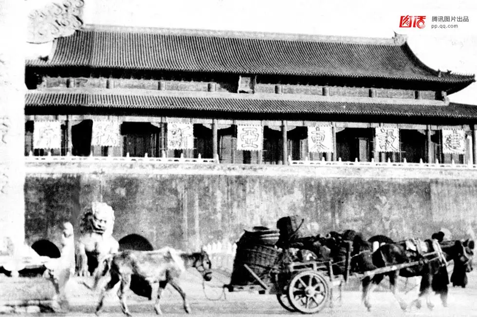 1928年,蒋介石二次北伐胜利结束军阀混战,当年7月,北平军政各界组织7万人在天安门前举行祝捷大会。同年8月24日,孙中山遗像被挂上了天安门城楼,这是天安门城楼首次挂个人画像。图为1929年,孙中山灵榇送殡队伍经过天安门。FOTOE