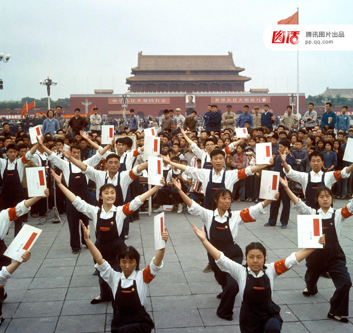 随着中国改革开放,天安门广场也经历了逐步开放的过程。1976年以前,广场上的人大多以集体身份出现,在1980年代之后,越来越多的人以个体和家庭的面貌出现。即使是游行,1984年的口号也带着浓郁的开放风味,隆重推出的不再是“斗私批修”或者“反帝反修”,而是“联产承包好”。
