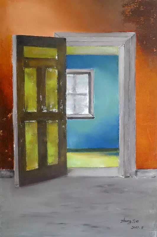 听说我少年时期学习过油画,并知道我对西洋绘画有所偏爱,张洁常邀我去家里聊天,并对她的画提出意见。她的第一幅画(她不愿意给自己的画标题,只注上日期,这幅画完成于2006年3月。是我看到的她最早的一张画。)就让我大吃了一惊。