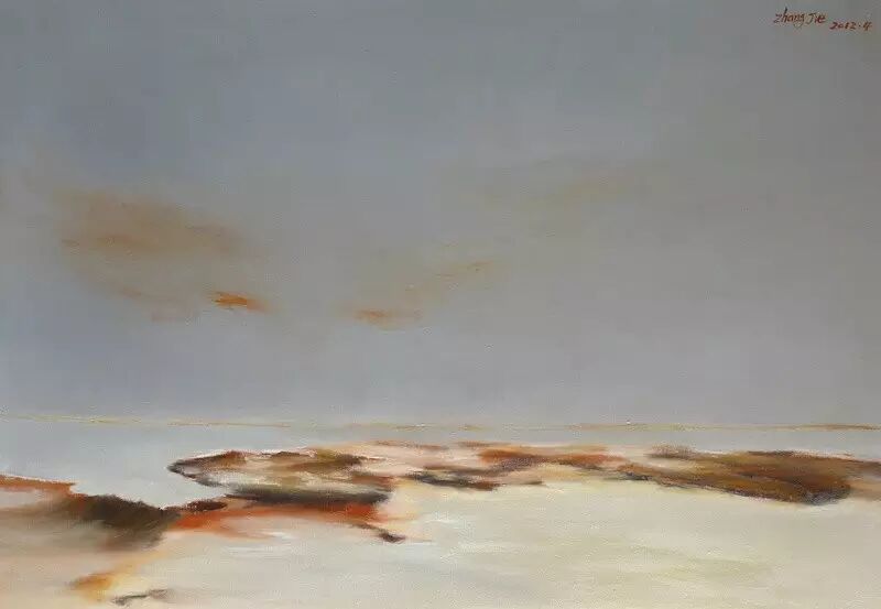 大家对张洁的画给予了相当高的评价,铁凝和敬泽专门为她的画展写了序言,诗人西川还写了评论。北京作家协会主席刘恒也非常关注张洁的画,专门约我陪他看了展览。刘恒尤其喜欢“2012年4月”那一幅。他说:“这幅画让我想起了雅斯贝尔斯的存在主义哲学。斑驳的海岸和遥远的地平线,使人产生对生命、生存和时间的感悟。”确实,那个隐隐约约的地平线仿佛就是“此在”与“超越存在”的界线,让人有无限的想象和思考。