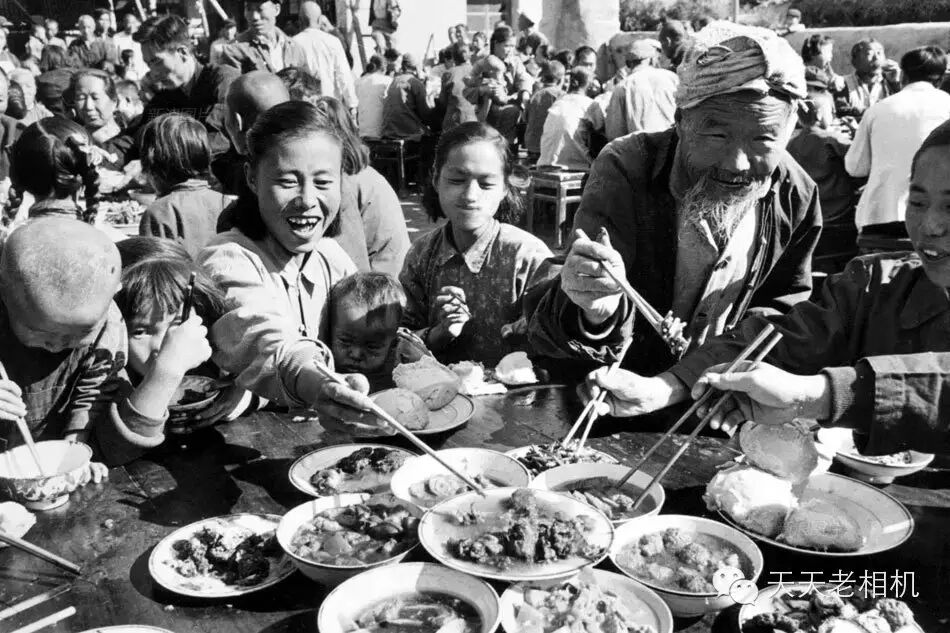 1958年,北京玉渊潭人民公社社员在举行国庆节聚餐。